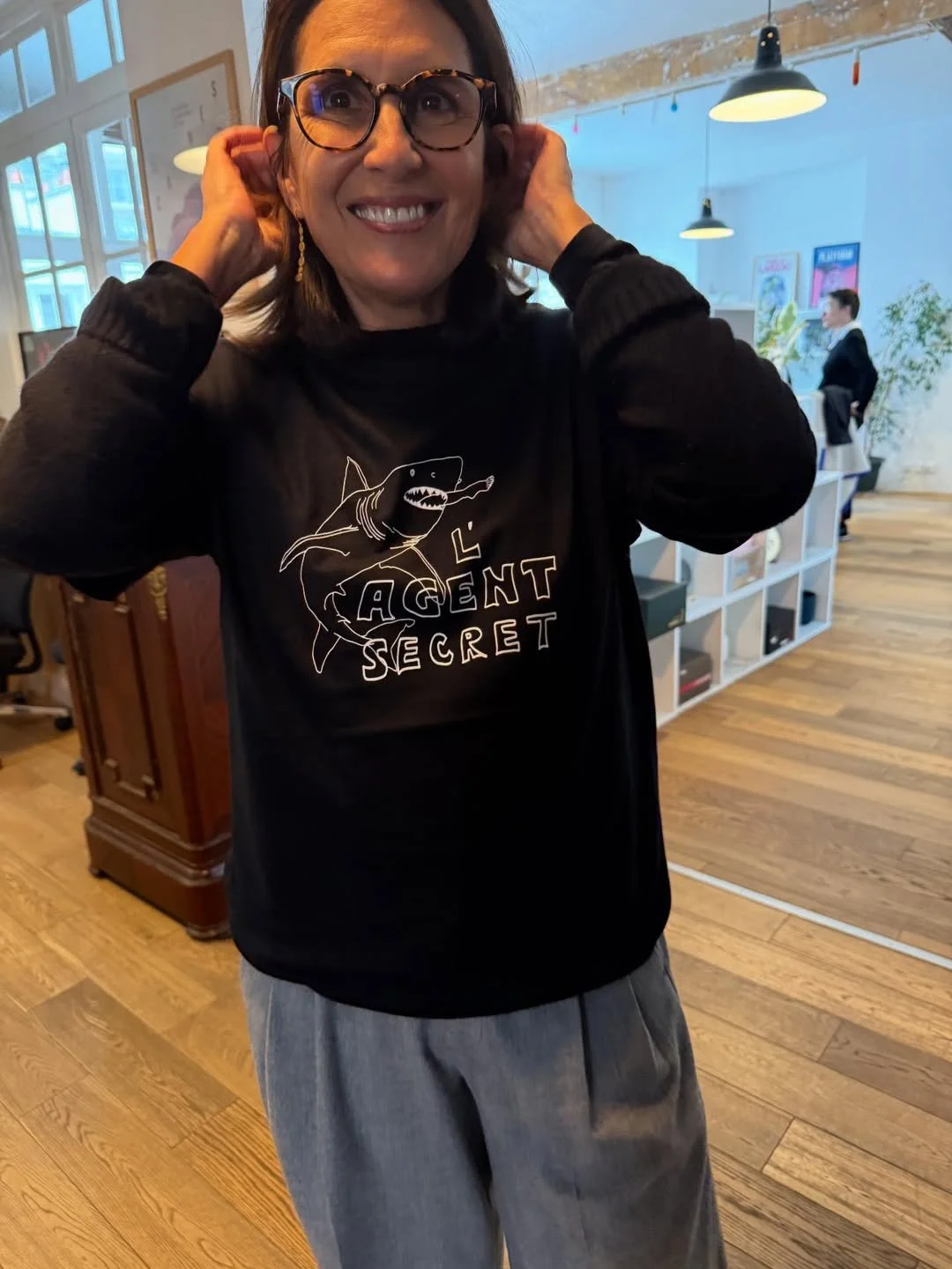 Alexandra, diretora da AD VITAM, distribuidora do filme na França. Foto compartilhada no Instagram do Kleber.