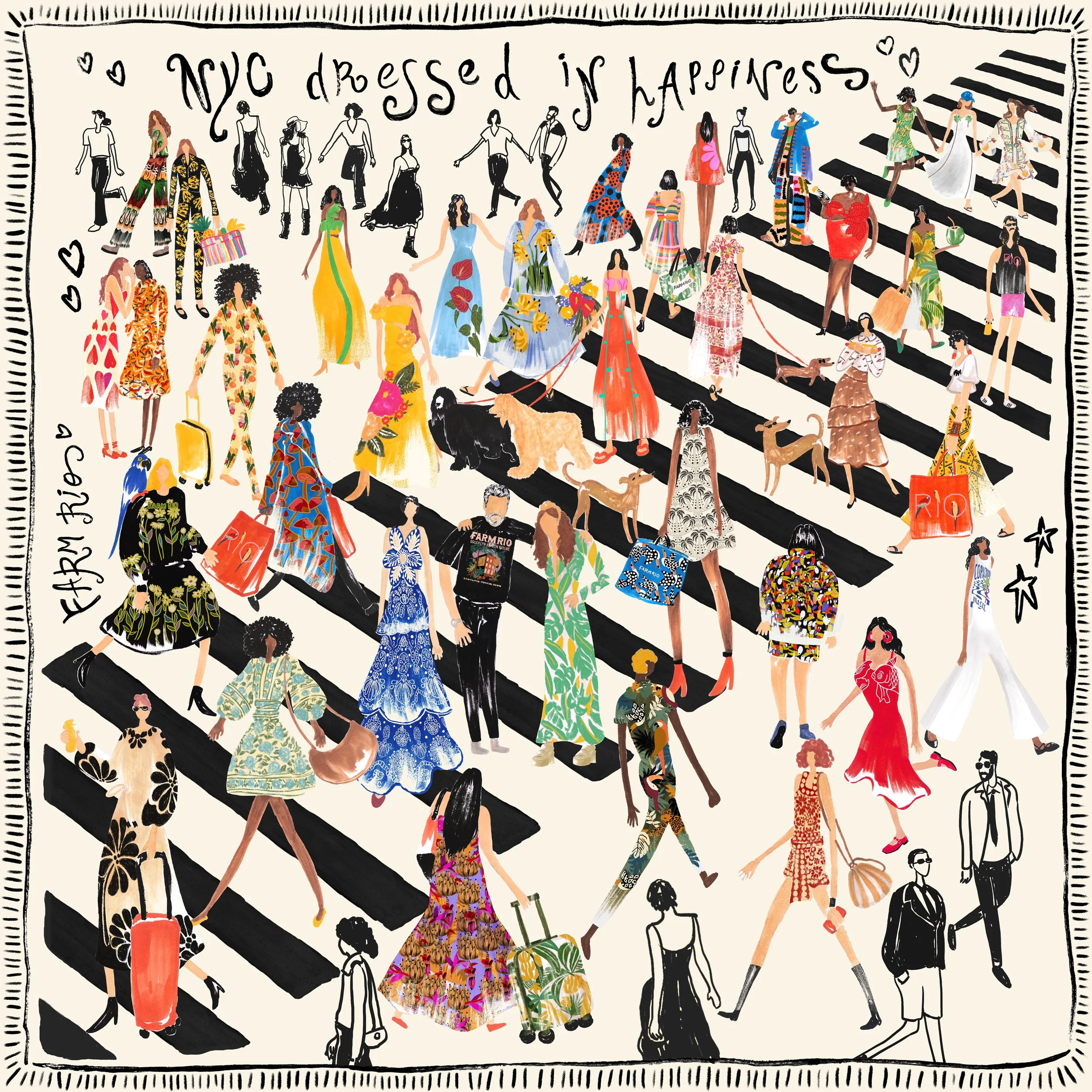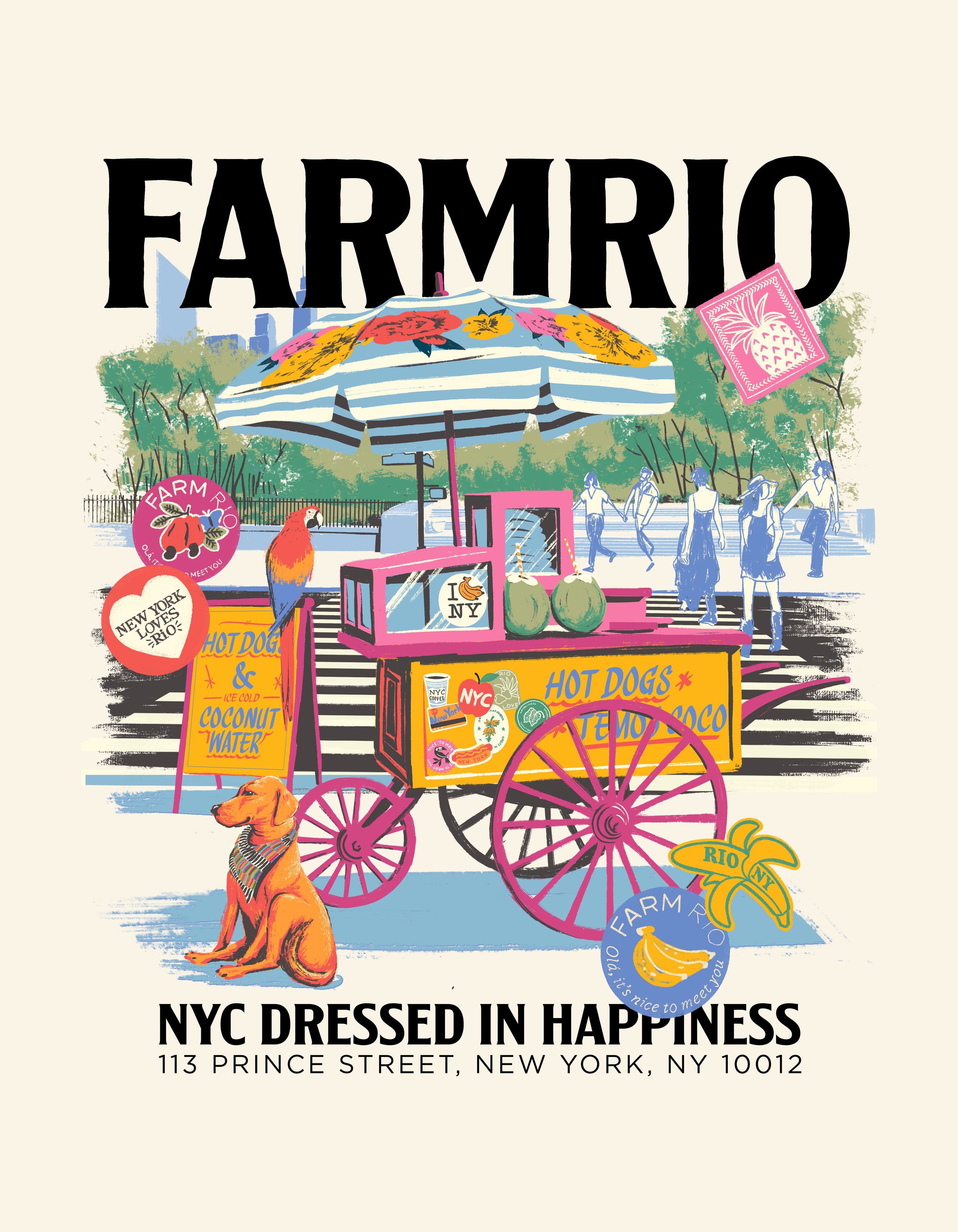 The NYC Dressed in Happiness souvenir collection paid tribute to FARM Rio's first store outside Brazil, bringing together the brand's icons in a narrative of affection and celebration.